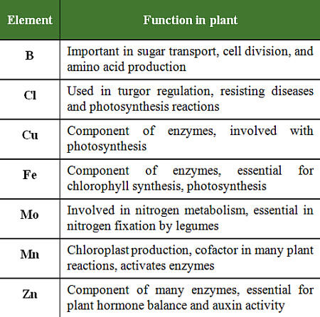 Role of macronutrients and micronutrients. About half of the essential elements are considered macronutrients: Modification of work by malcolm manners). A shortage in any of them leads to deficiencies, with different adverse effects on the plant's.