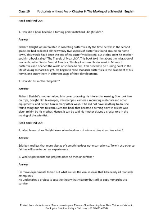 NCERT Solutions For Class 10 English Chapter 7 The .... The making of a scientist extra questions. Ncert solutions for class 10. Get inside step by step solution of ncert class 10 english footprints without feet chapter wise solutions prepared by expert faculty member of entrancei to score good marks in board exam. Ncert solutions for class 10 english (first flight). The making of a scientist extra questions. Download complete ncert textbooks pdf for free (class 1st to 12th).